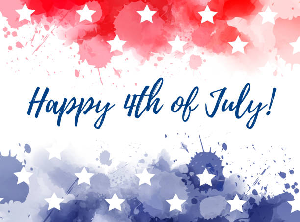Happy 4th of July! Abstract background with watercolor splashes in flag colors for USA Independence day holiday. Blue and red colored with stars. Template for holiday background, invitation, flyer, etc.