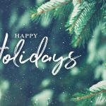 Merry Christmas written in white against a soft green background with candy canes, ornaments, and presents surrounding it.