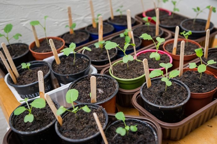 Seedlings in pots waiting to get planted.